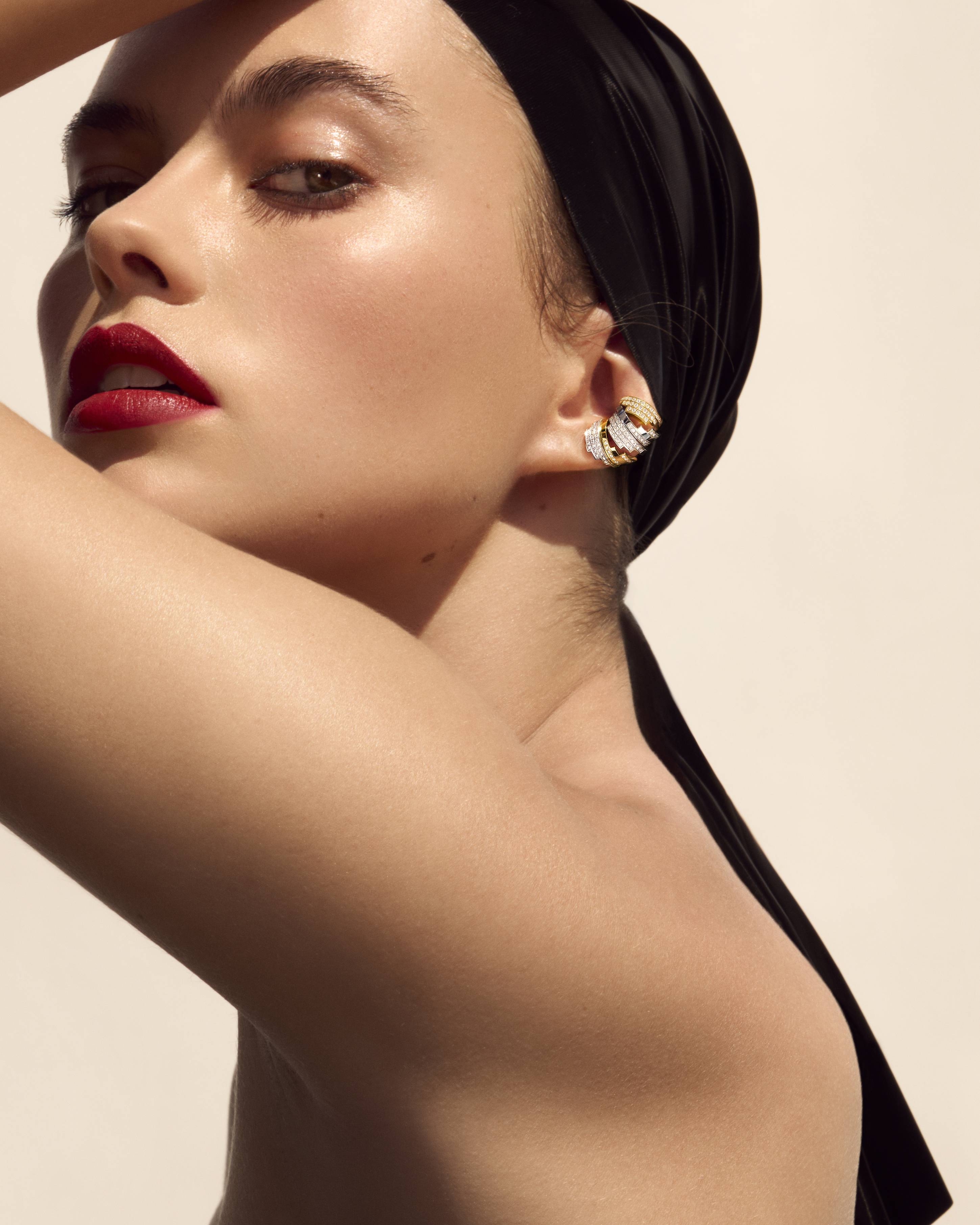张力与柔美并生的轮廓,搭配随身摇曳的钻石闪烁迷人光芒。全新作品为AHKAH标志性的chandelier系列注入璀璨新意。